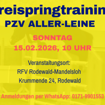 04.01.2026, 10 Uhr Die Teilnehmerliste: Alter G Abstammung Besitzer 1. 6j. S For Dance – Alabaster Cornelia Poppe 2. 4j. W Chekter – Elliot van Ter Hulst Josephine Tuchscheerer 3. 4j. W Despacito – Likoto xx Katja Tiedemann-Busch 4. 4j. S Valensky – Singular Joter H. Jürgen Rump 5. 4j. S Varioka du Temple – Graf Top Günter Röhrich…